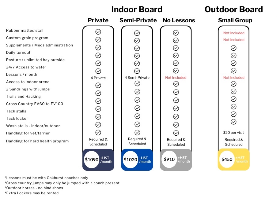 Oakhurst Farm is Eastern Ontario’s premiere Eventing facility, offering the following boarding options (Current Fees are effective May 01, 2025):
